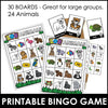 - 30 unique Bingo cards featuring essential zoo animal vocabulary