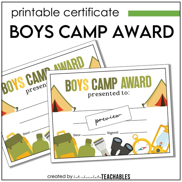 Boys Camp Awards, Summer Camp Certificate for Kids, Printable Certificate of Participation