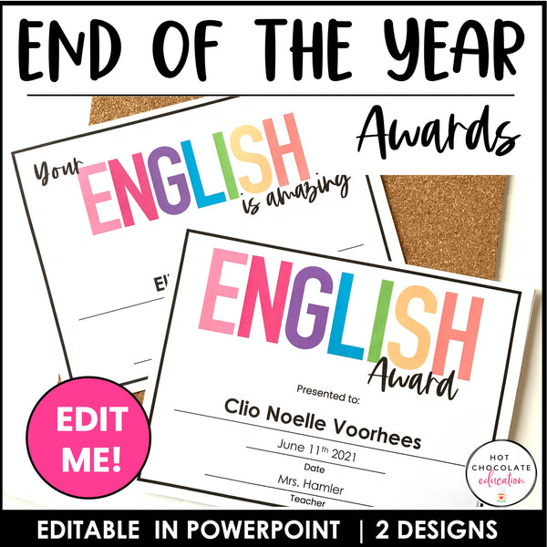 End of Year English Award Certificate - Editable Name and Date Fields