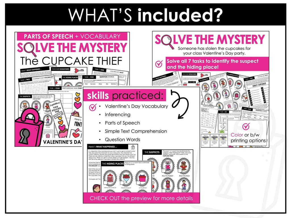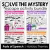 Make learning grammar, vocabulary, and reading comprehension exciting with this Solve the Mystery Escape Activity BUNDLE. This set includes four themed escape-style games for Valentine’s Day, Easter/Spring, Halloween, and Christmas. Each activity provides an interactive way for students to review parts of speech, comprehension skills, and seasonal vocabulary while working together to “crack the code” and solve the mystery.