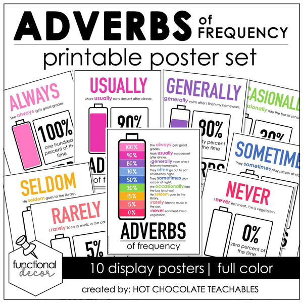 Adverbs of Frequency Posters – ESL Grammar Classroom Bulletin Board