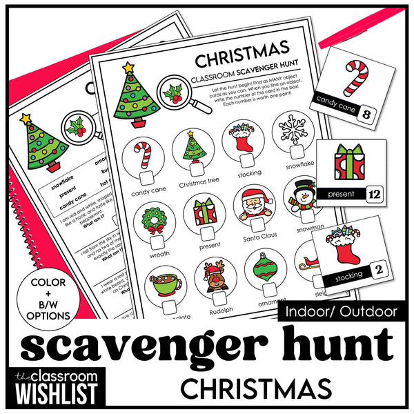 Christmas Vocabulary Picture Scavenger Hunt - Holiday Party Game with Clues