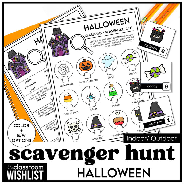 Halloween Vocabulary Scavenger Hunt - Classroom Party Game with Clues
