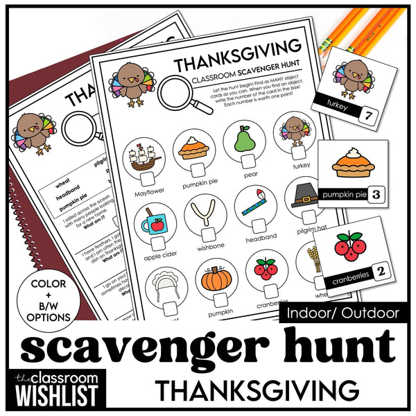 Thanksgiving Vocabulary Scavenger Hunt - Classroom Party Game with Clues