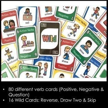 - 80 full-color verb cards