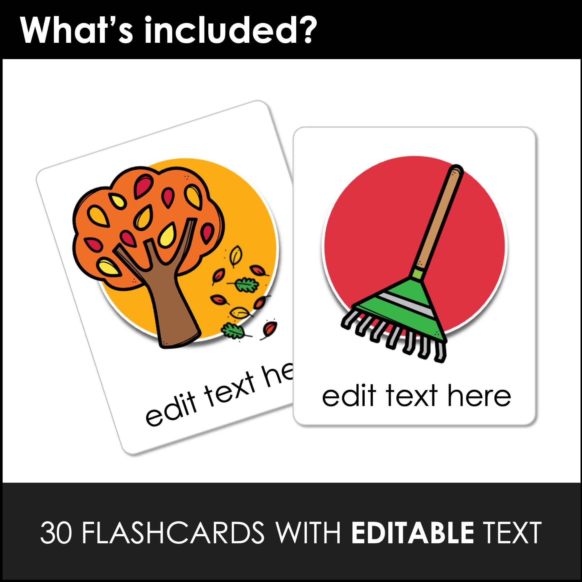 Autumn Fall Flashcards - ESL Vocabulary Flash Cards for Kids (Editable Text)