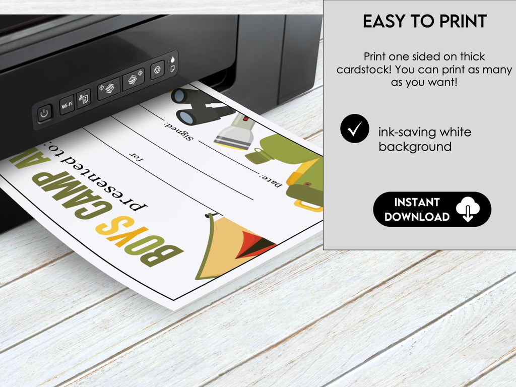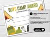 Celebrate summer camp success with these printable Boys Summer Camp Award Certificates. Perfect for recognizing participation and achievement in boys’ and young men’s camp programs, these certificates are easy to print, fill in, and present at end-of-camp ceremonies or special events.
