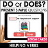 Give your ESL students targeted grammar practice with this Do/Does Helping Verb Boom Cards™ deck! This interactive activity helps learners correctly form questions in the Present Simple tense by choosing the right auxiliary verb — Do or Does — based on the subject. Students analyze each sentence and apply subject-verb agreement rules to select the correct option.