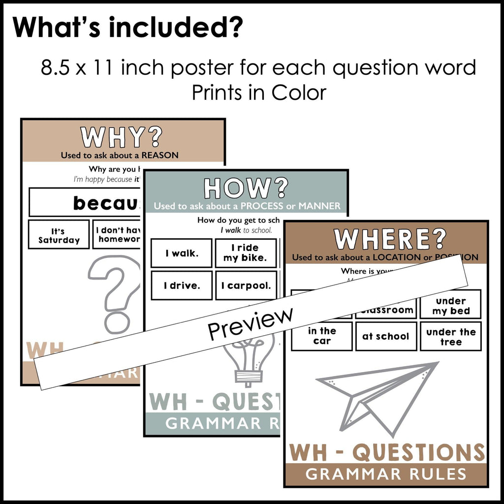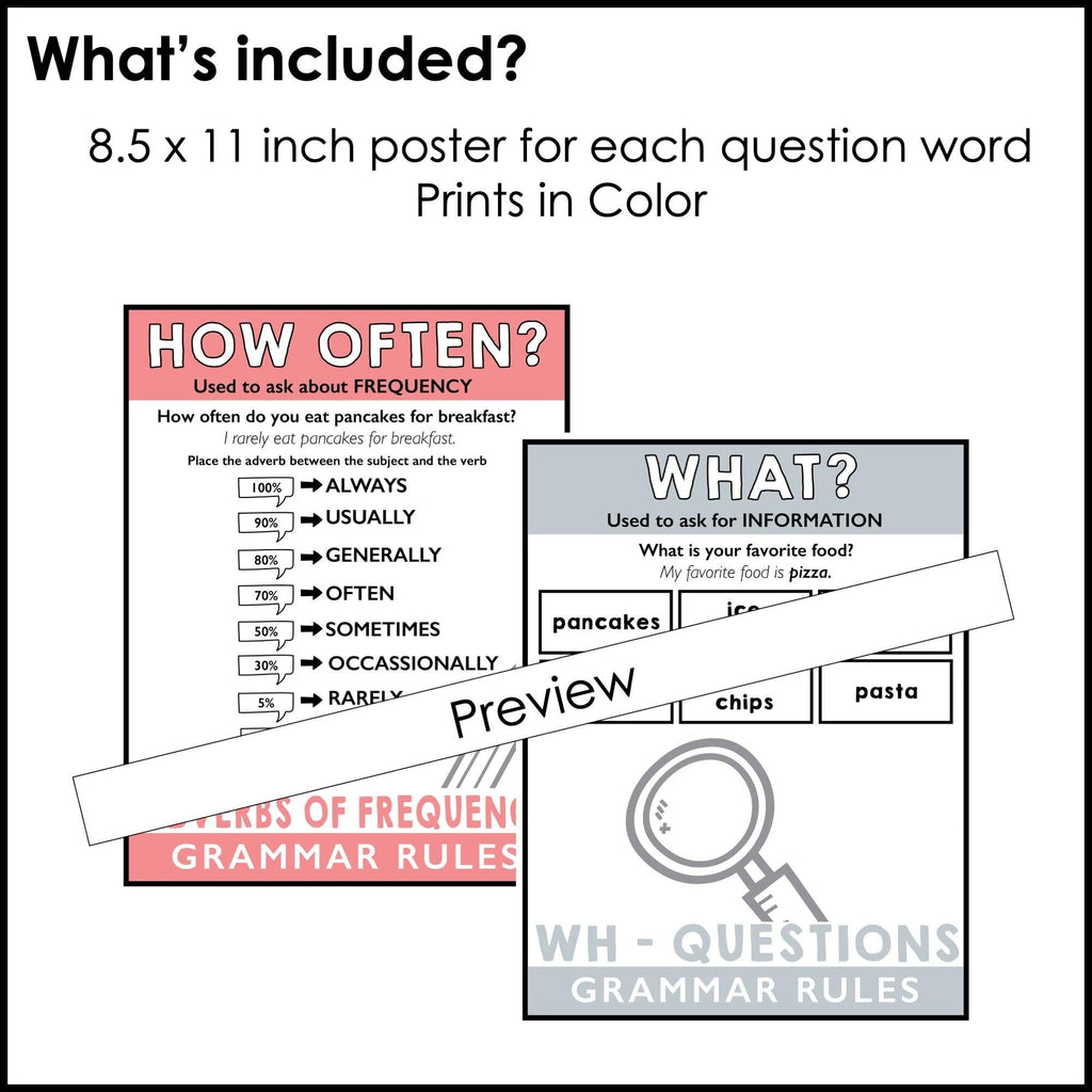 - 7 Wh- Question Posters: What, Where, When, Why, Who, How, How often