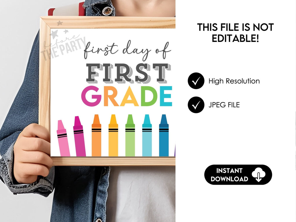 Celebrate your child’s milestone with this colorful First Day of 1st Grade photo sign. Perfect for parents, teachers, and homeschoolers, this printable back-to-school sign makes it easy to capture cherished memories on the first day of school.