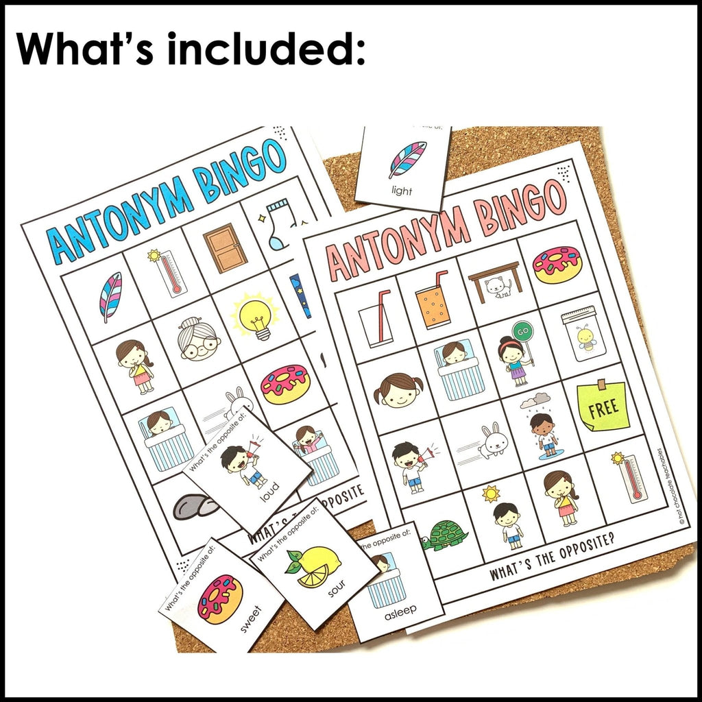 The game is played by asking your students to cover the opposite of the word you call out. This simple twist encourages critical thinking and deeper understanding of antonym pairs. It’s also perfect for practicing listening skills in both ESL and ELA classrooms. Just print, laminate the boards, and reuse them year after year!