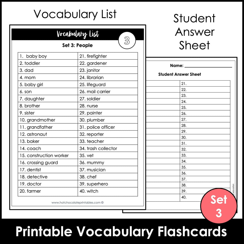 For even more vocabulary practice, pair these Jobs & Family Flashcards with my Clothing Vocabulary Flashcards. Together, they provide engaging lessons on both people and what they wear, helping students connect jobs and characters with clothing and accessories.