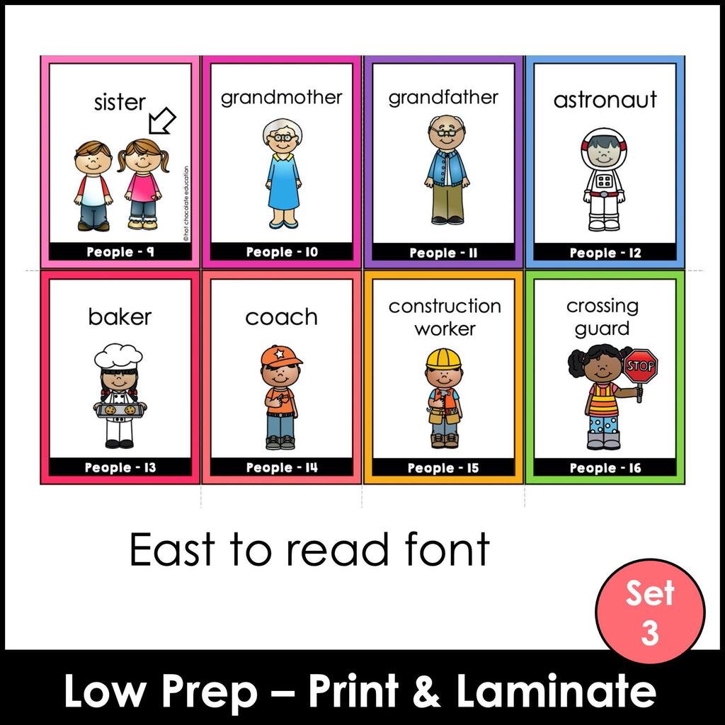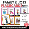These Jobs & Family Vocabulary Flashcards feature people in the community and are designed for versatile classroom use. The set includes family members, community workers, and 3 fun make-believe characters, making it an engaging way to build vocabulary with ESL, EFL, and ELL students.