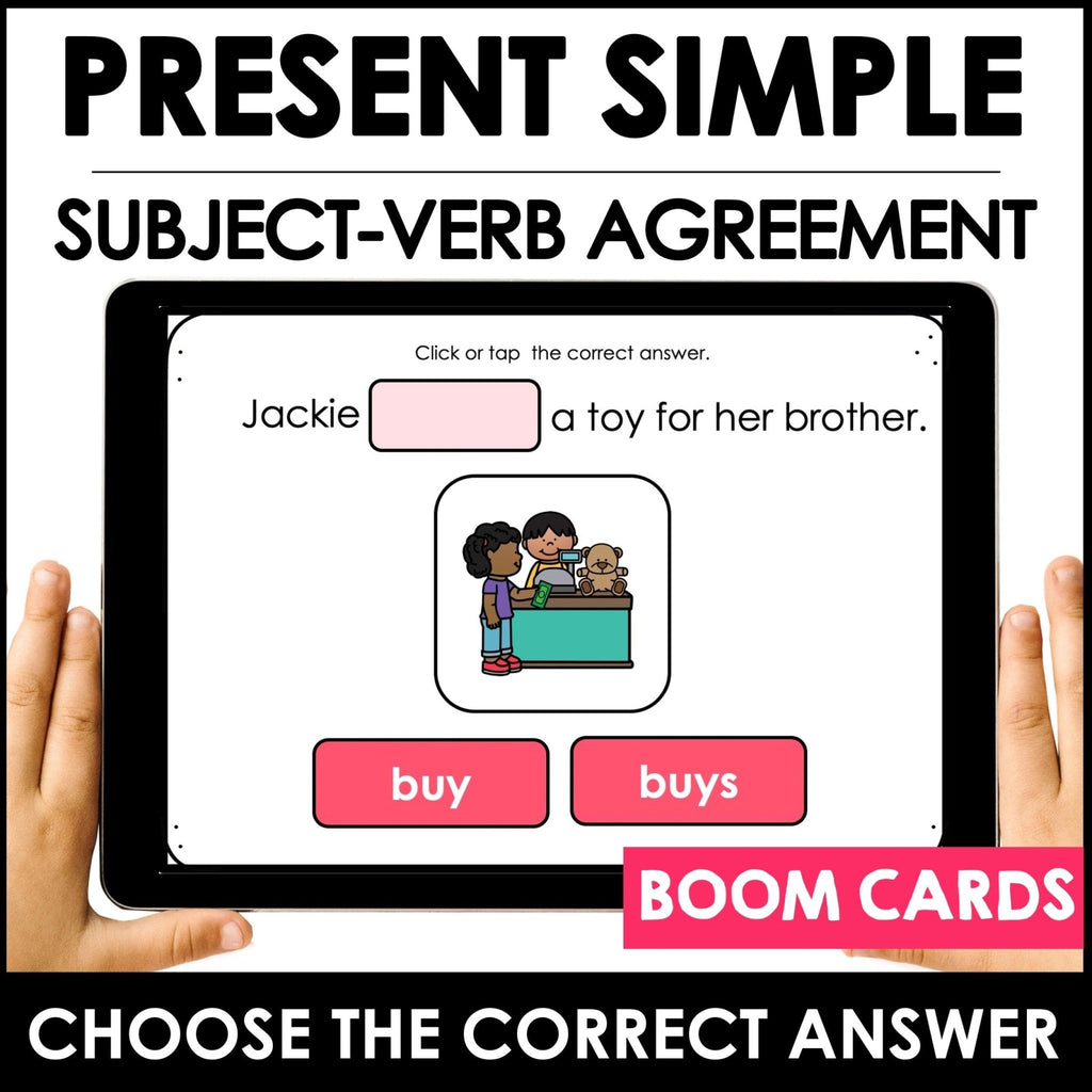 Prefer shopping on TpT? Find it here: Present Simple | Subject-Verb Agreement Boom Cards™ .