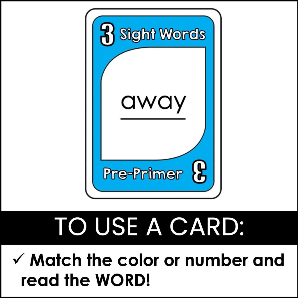 Find this resource in my Teachers Pay Teachers shop here: Sight Word Card Game – Dolch Pre-Primer Aligned