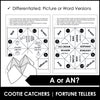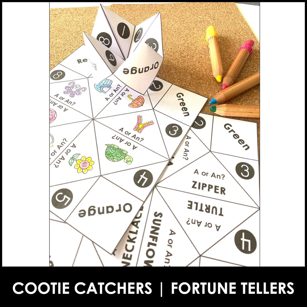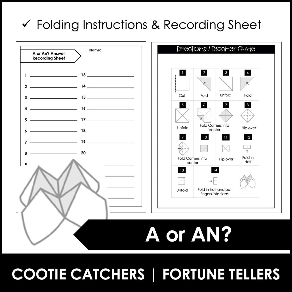Make learning indefinite articles fun and interactive with these printable A or An cootie catchers! This engaging grammar game helps students practice choosing the correct article based on whether a word begins with a vowel sound or a consonant sound. Perfect for ESL, EFL, and early elementary learners, these cootie catchers turn grammar drills into a hands-on game that students love.